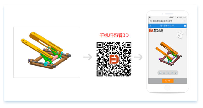 基于图纸通的“项目协作”模块,创建教材所配套的公开群组(项目),将配套的3D模型上传到群组中,每个模型都对应一个二维码,扫描二维码可以在线查看3D模型,并可以对3D模型进行移动、旋转、缩放、剖切、装配模型的爆炸(分解)、测量、留言评论等操作。