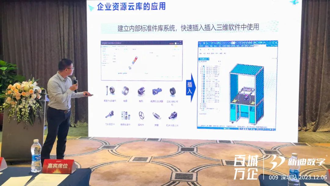 此外,会议现场新迪数字合作客户广东涌固科技有限公司副总经理朱志滨分享了该企业使用新迪三维设计软件的实际应用案例,并重点强调了新迪三维设计软件在提升研发设计协同效率等方面所发挥的积极作用。
