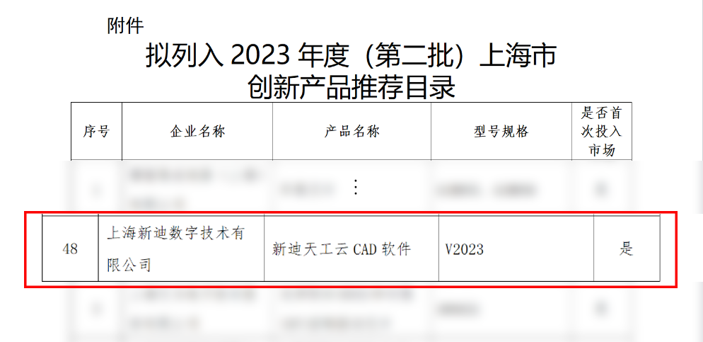 新迪天工云CAD入选上海市第二批创新产品推荐目录