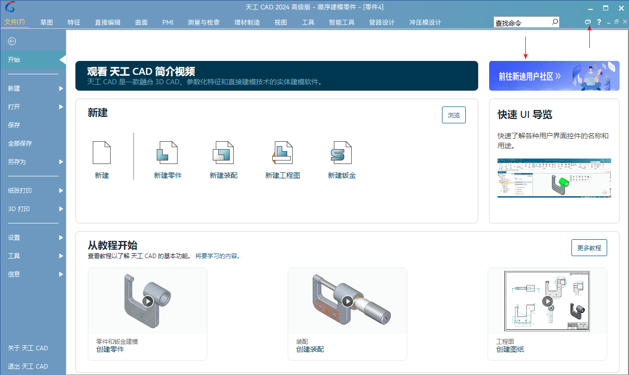 本次更新天工CAD新增新迪用户社区入口,旨在优化用户体验。