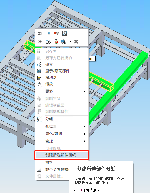 装配体支持对部分对象单独创建图纸(零件、子装、框架件),提升出图效率。