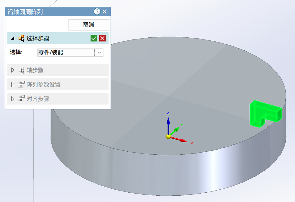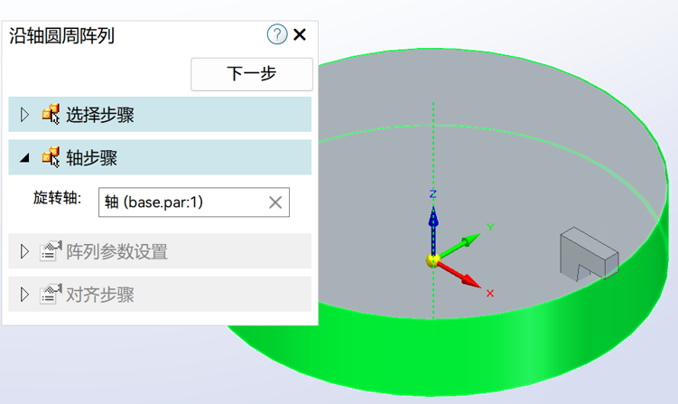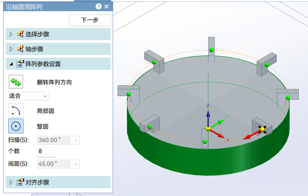 装配体中新增针对零件/子装和装配特征的沿轴圆周阵列,改善阵列操作体验,提升效率。