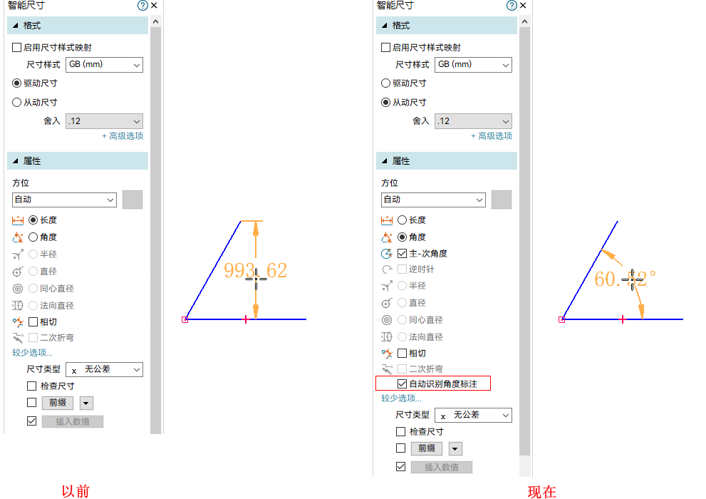 智能尺寸支持能自动测量非平行线间的角度,减少冗余操作。