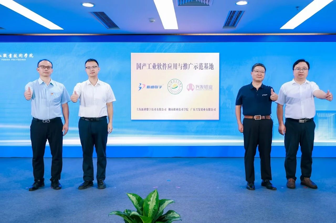 除了“功夫工坊”联盟成立仪式之外,现场还进行了12个产教融合项目重磅签约。其中,新迪数字、佛职院与兴发铝业携手,围绕国家新质生产力战略及产业链安全,立足佛山智能制造与铝型材行业,共建“佛职院-天工CAD国产工业软件应用与推广示范基地”。