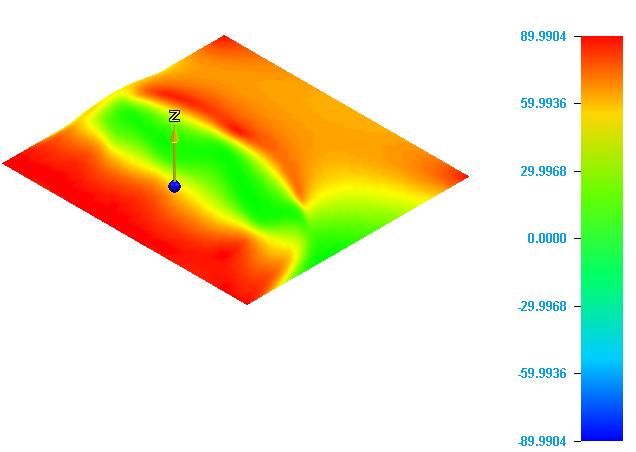 新增斜率分析命令,使用斜率分析命令可以通过可视化方式查看某个曲面上的所有点的表面法向与垂直于参考矢量的平面之间的角度。