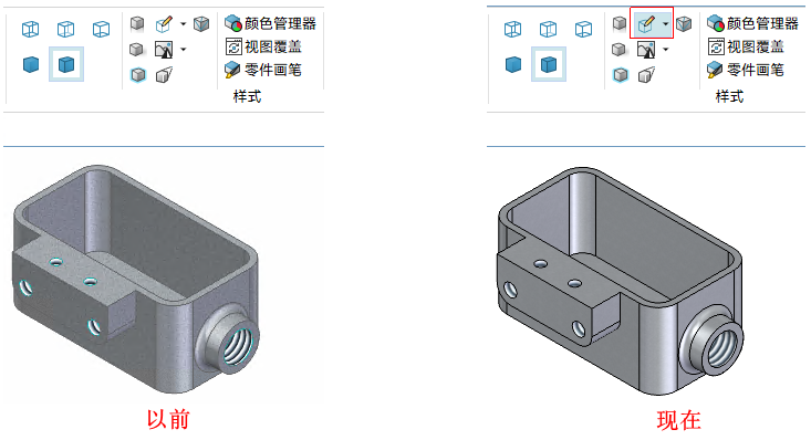 视图样式为“带可见边的着色”时“单色边”颜色默认设置为标准黑色。