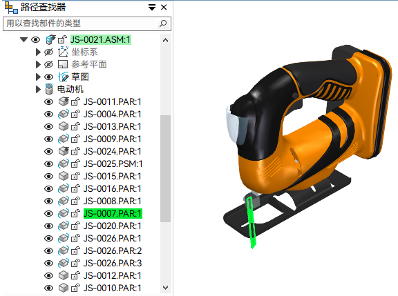 当用户在图形窗口中选择零部件时,路径查找器会自动定位到所选的零部件并高亮显示,提升操作效率。