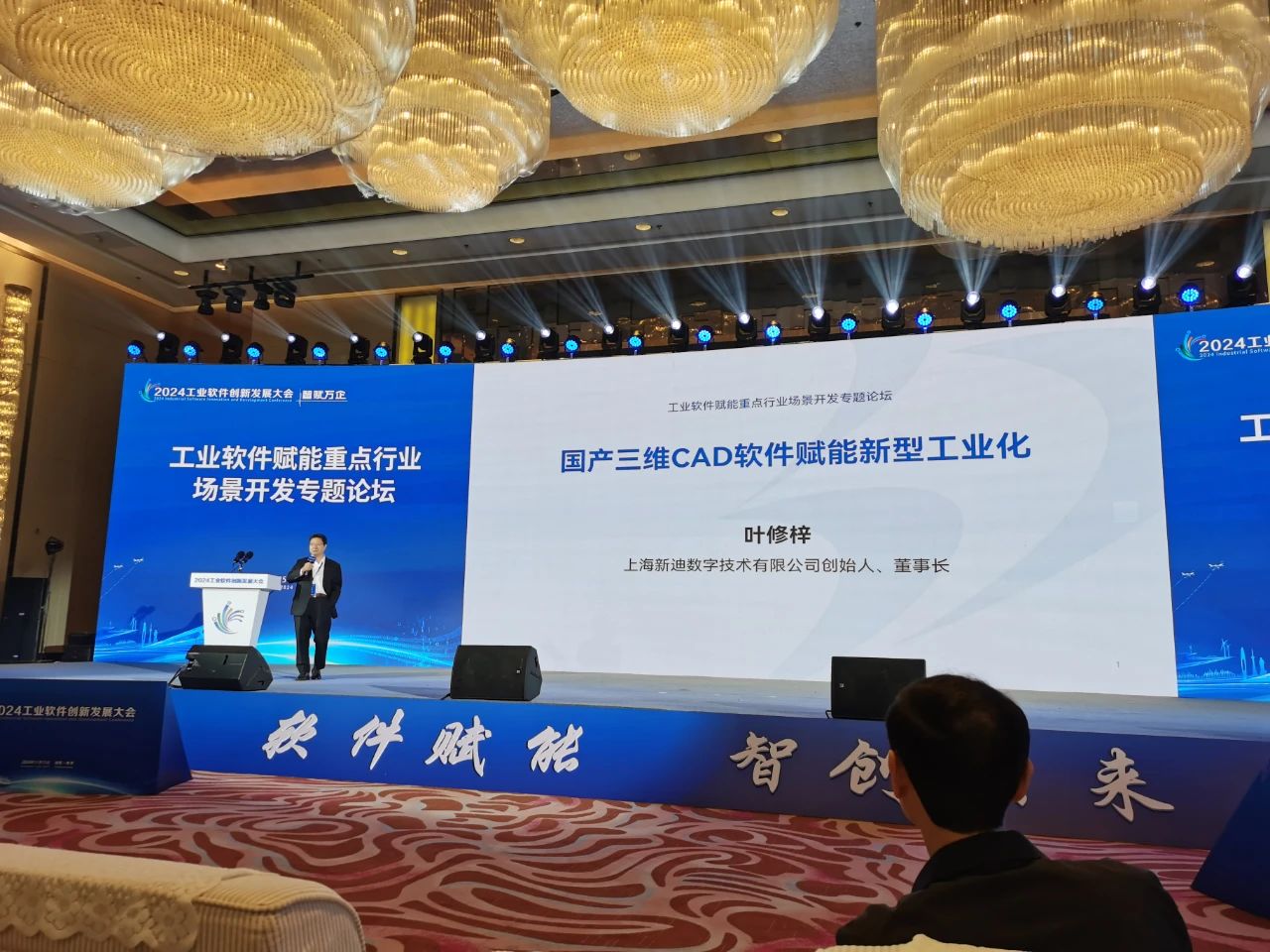 叶修梓博士作为特邀嘉宾出席会议,并发表了题为《国产三维CAD软件赋能新型工业化》的精彩演讲,他分享了新迪数字在国产三维CAD软件研发方面的探索历程及取得的成果,并指出,当前中国制造业处于转型升级关键期,新型工业化是必由之路,而实现新型工业化的核心是创新驱动,研发设计软件是推动创新变革的“工业母机”。