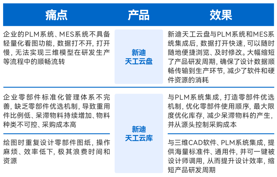 - 新迪天工云库无缝集成PLM,减少零部件库存、成本压力,提升设计效率