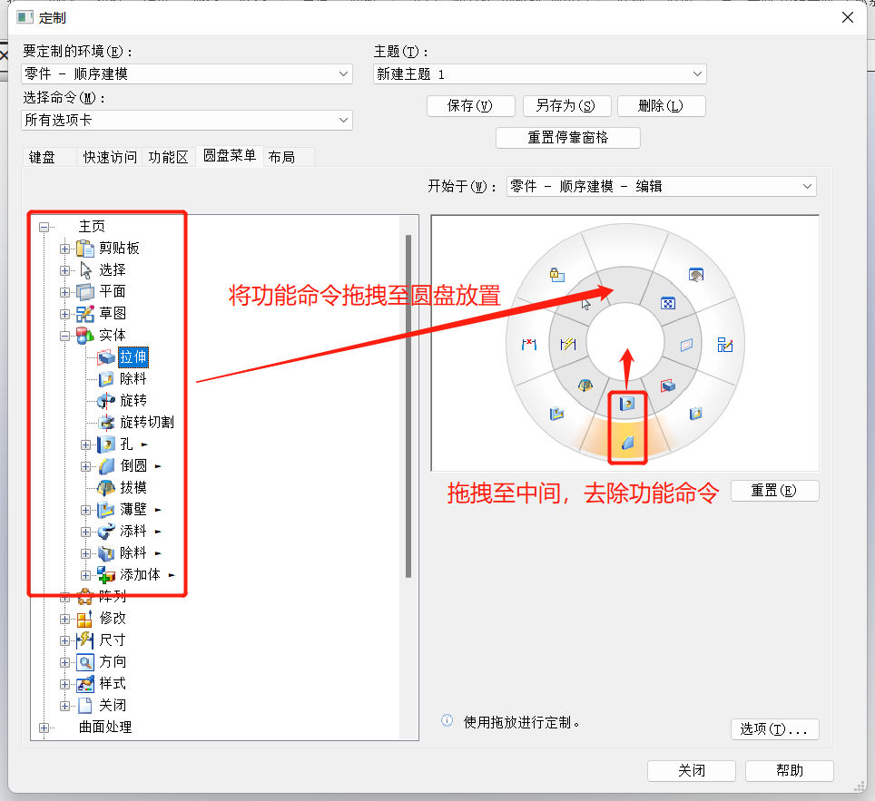 功能圆盘的功能如何添加和删除?(鼠标右键拖拽显现)