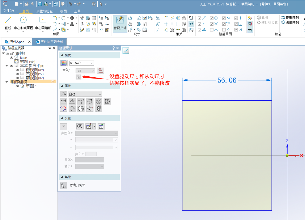 画草图标注的尺寸,默认不是驱动尺寸,而是从动尺寸