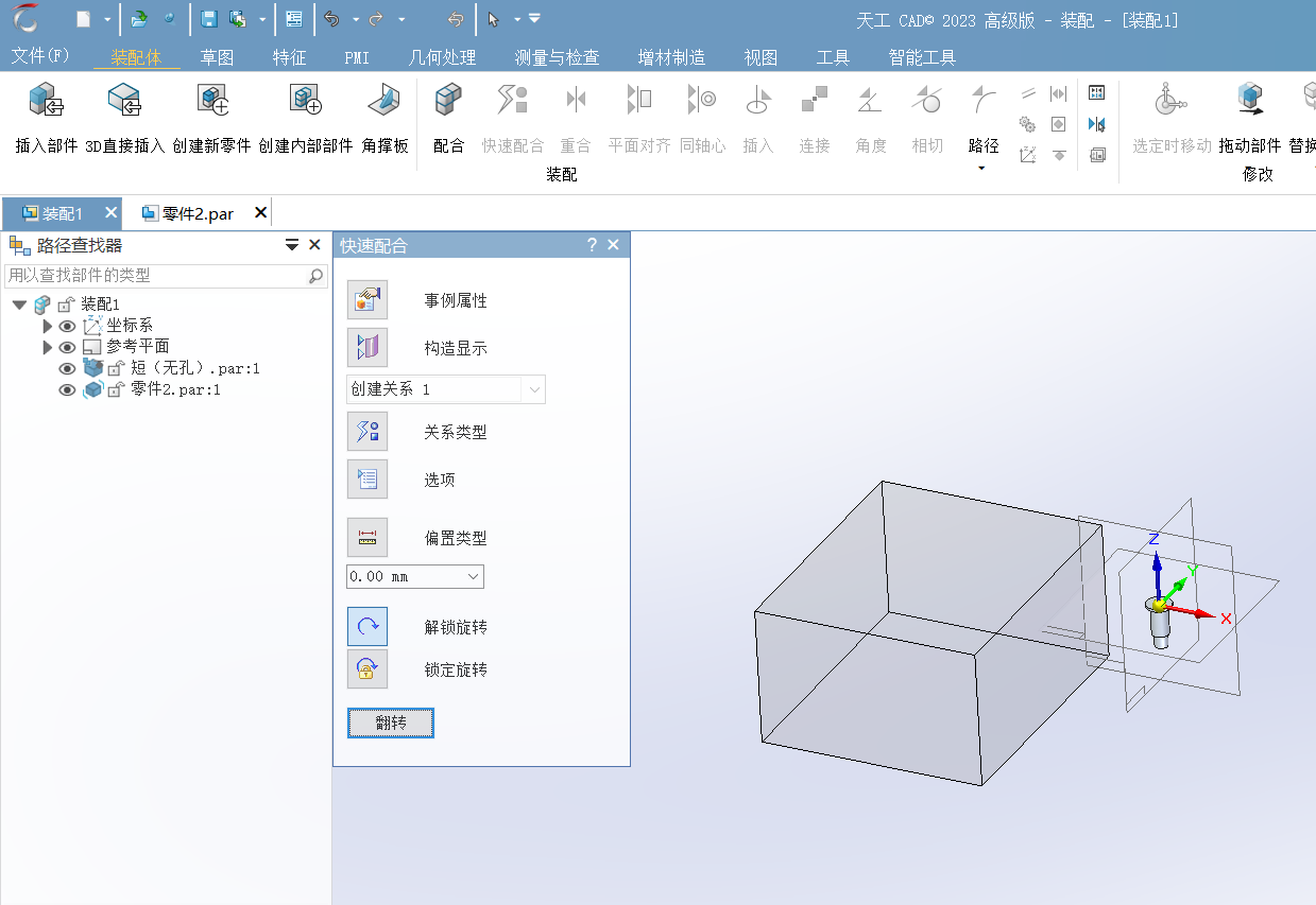 在打开的零件文件,不用通过插入选择零件位置,可快速插入到装配环境当中使用