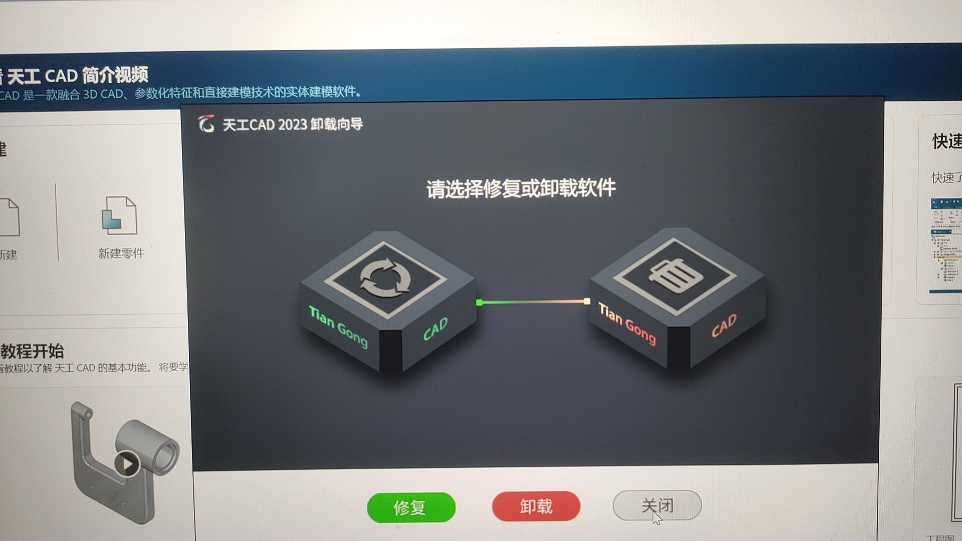 安装天工CAD后,双击桌面快捷方式不仅会打开天工CAD,还会打开天工CAD安装程序