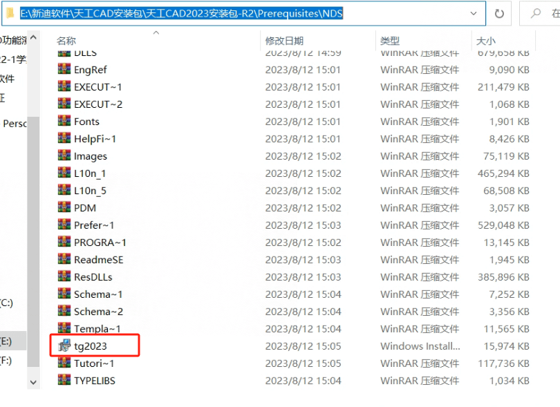 找到对应的安装包,比如这台电脑安装的是天工CAD2023 R2,那就找到R2安装包的这个目录,在“tg2023”点右键,再卸载,这时候就可以正常卸载旧版本。再安装新版本R3了。